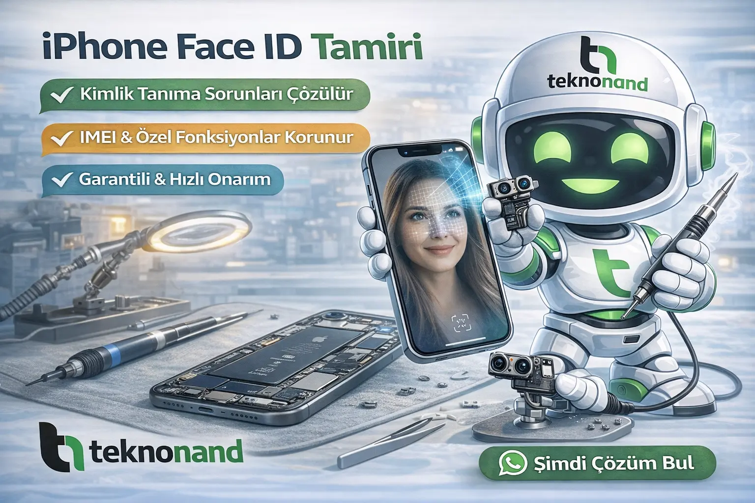 Teknonand, Face ID onarımında uzmanlaşmış nadir teknik servislerden biridir. Sağladığı avantajlar: